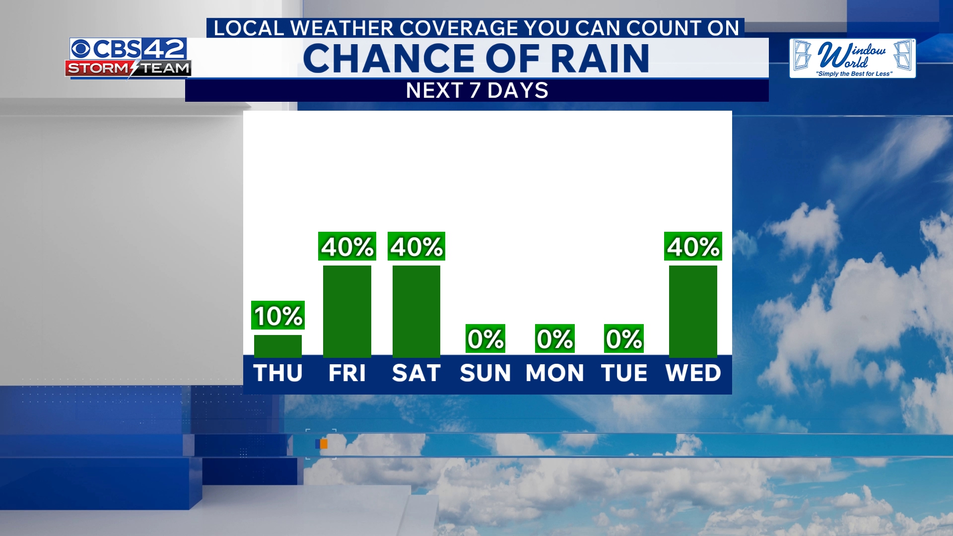 The CBS 42 Weather Livestream Channel has issued a Marginal Risk (Level 1/5) for severe weather, emphasizing that while the risk remains low, residents in affected areas should stay alert to fast-changing conditions. Overnight lows will fall into the lower to mid-50s, providing a cool backdrop to the storm activity.